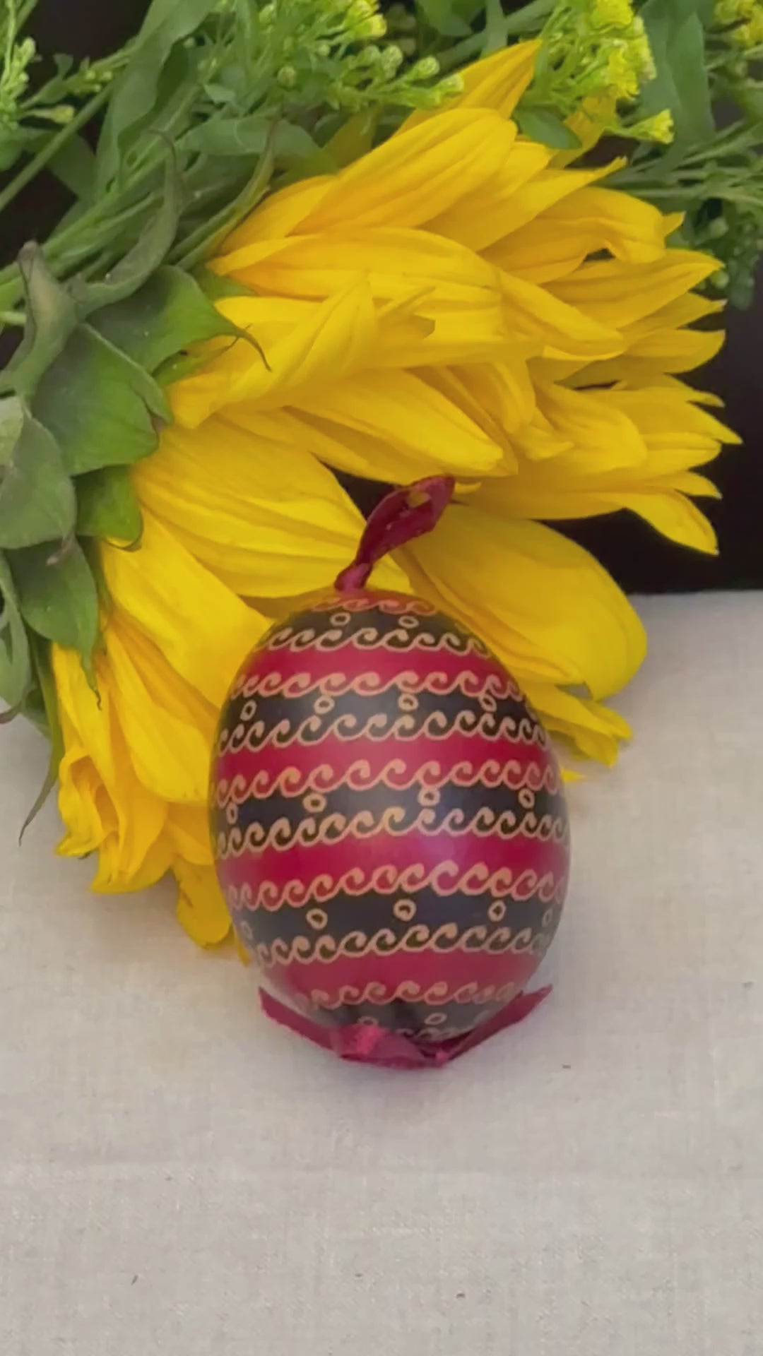 Each pysanka uses a genuine chicken egg, meaning slight natural variations in size add to the authentic, handcrafted character of this ancient art form.