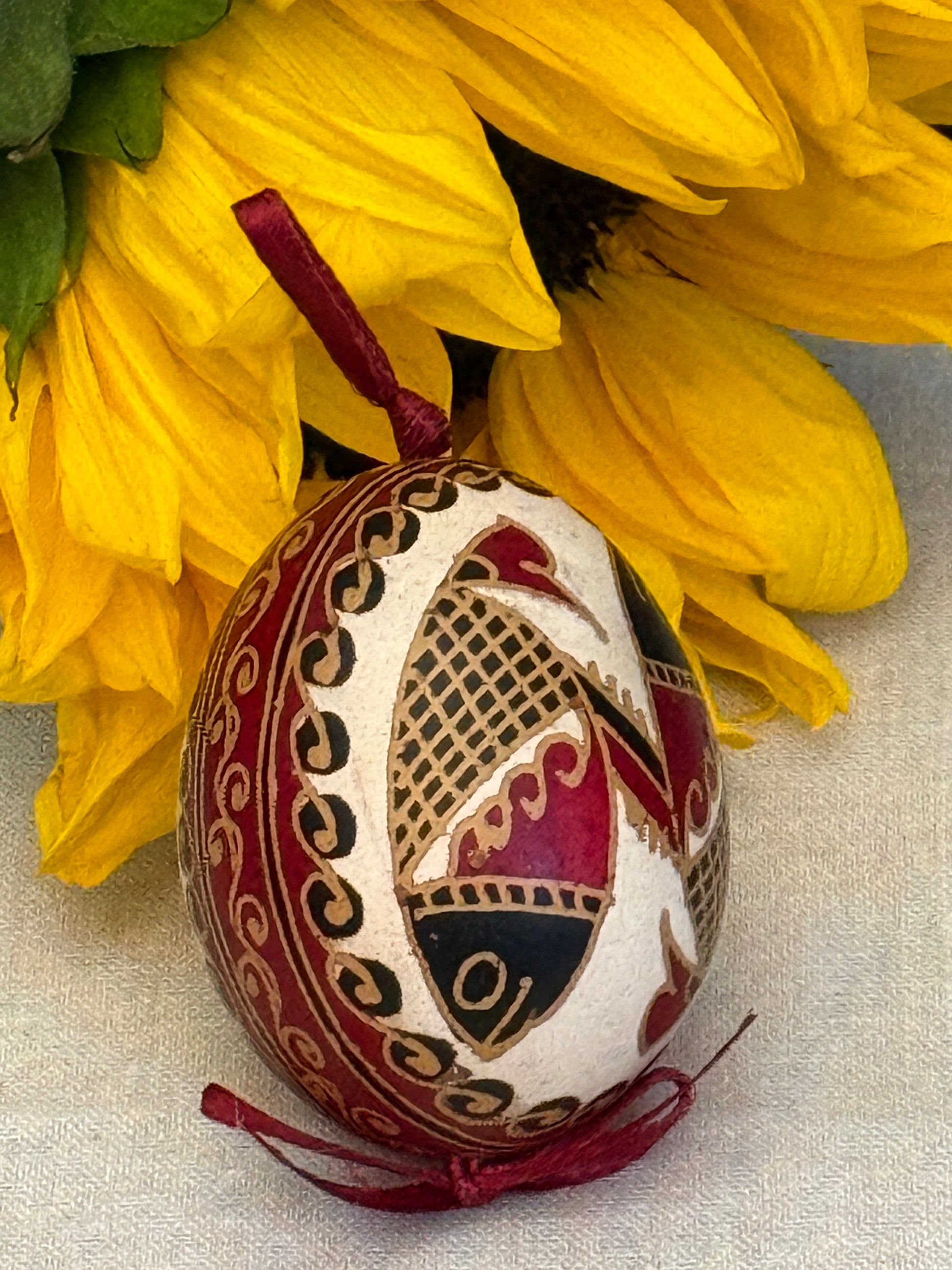 Each pysanka uses a genuine chicken egg, meaning slight natural variations in size add to the authentic, handcrafted character of this ancient art form.