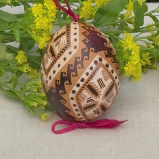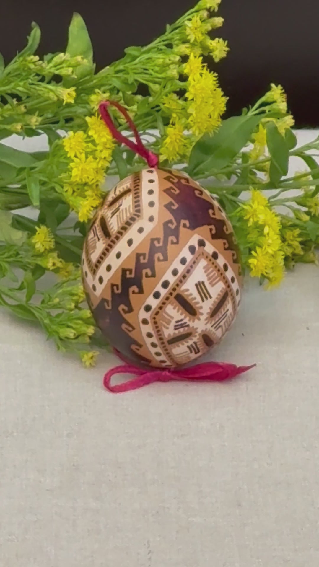 This pysanka reflects the sophisticated art and deep nature connection of the Trypillian culture, which flourished in Ukraine over 5,000 years ago, creating some of Europe's most advanced prehistoric settlements.
