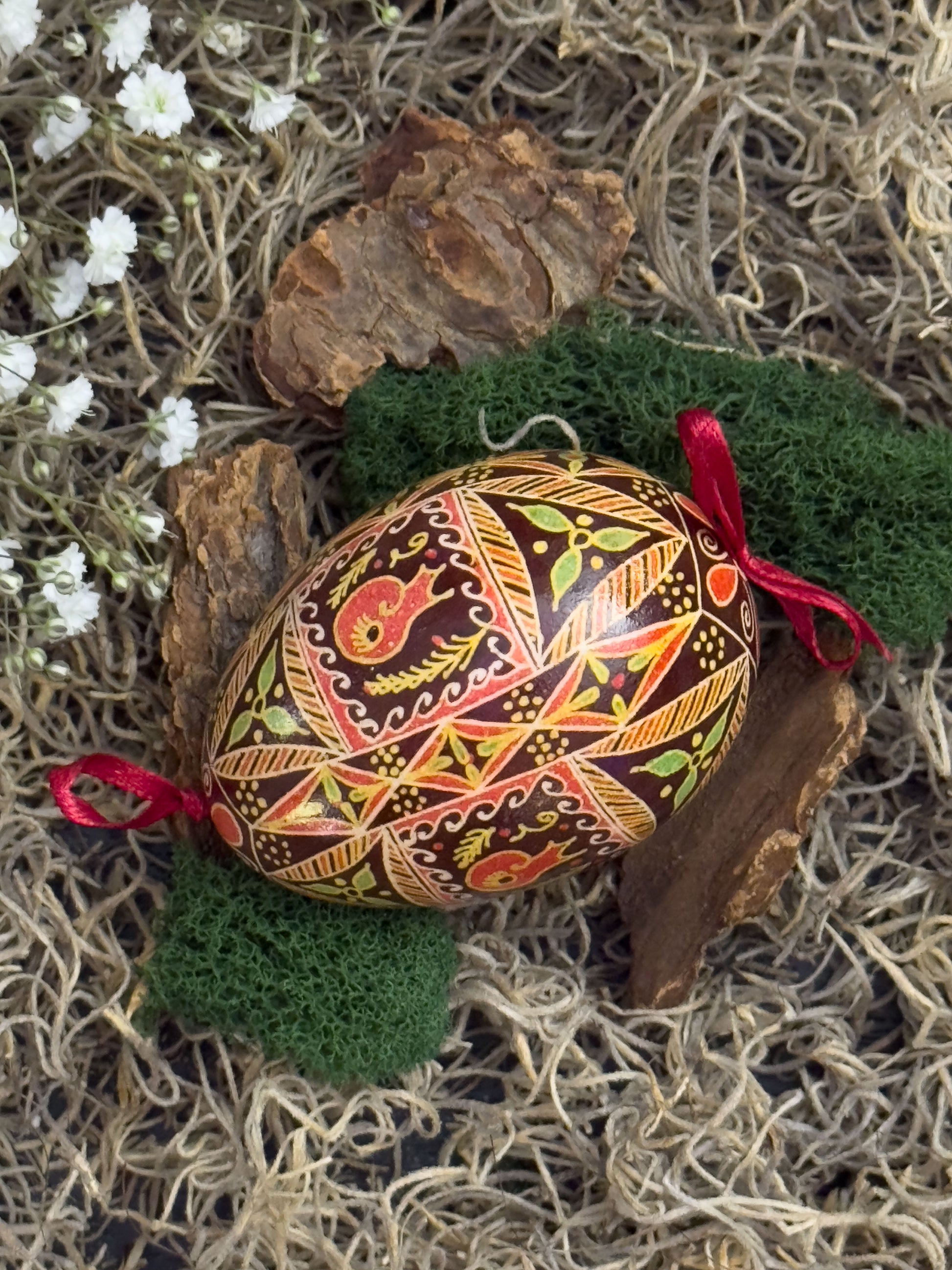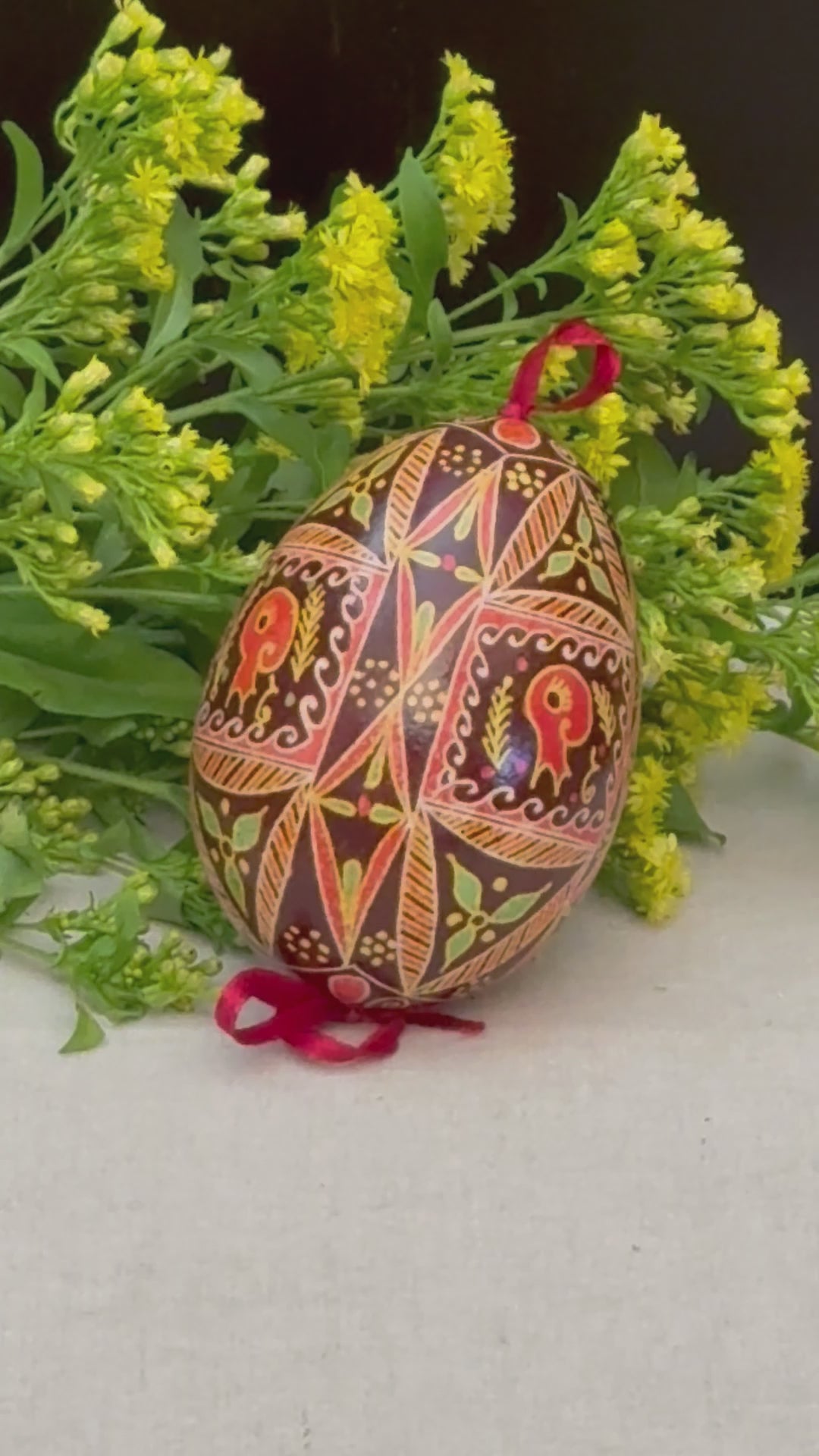 With skill and devotion, Olha Sakhno has transformed this goose egg into a stunning traditional pysanka, rich in history and meaning. This is more than just art - it's a cultural treasure connecting generations to sacred Ukrainian traditions.