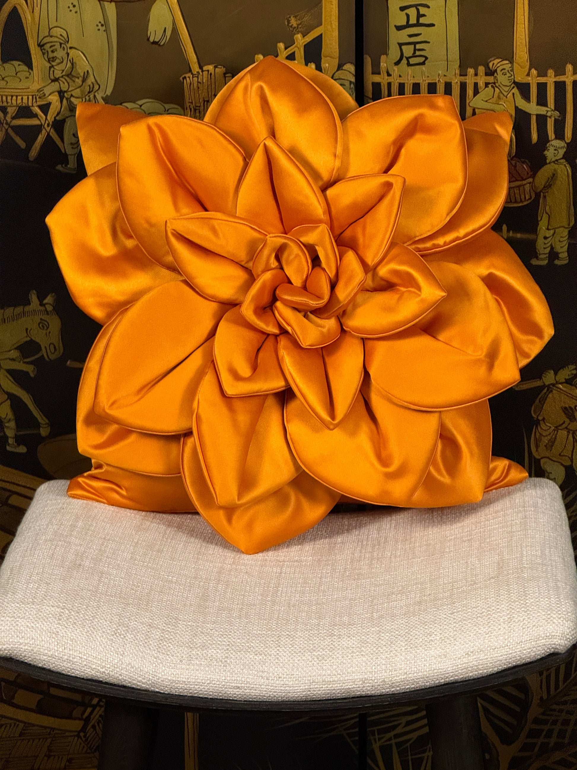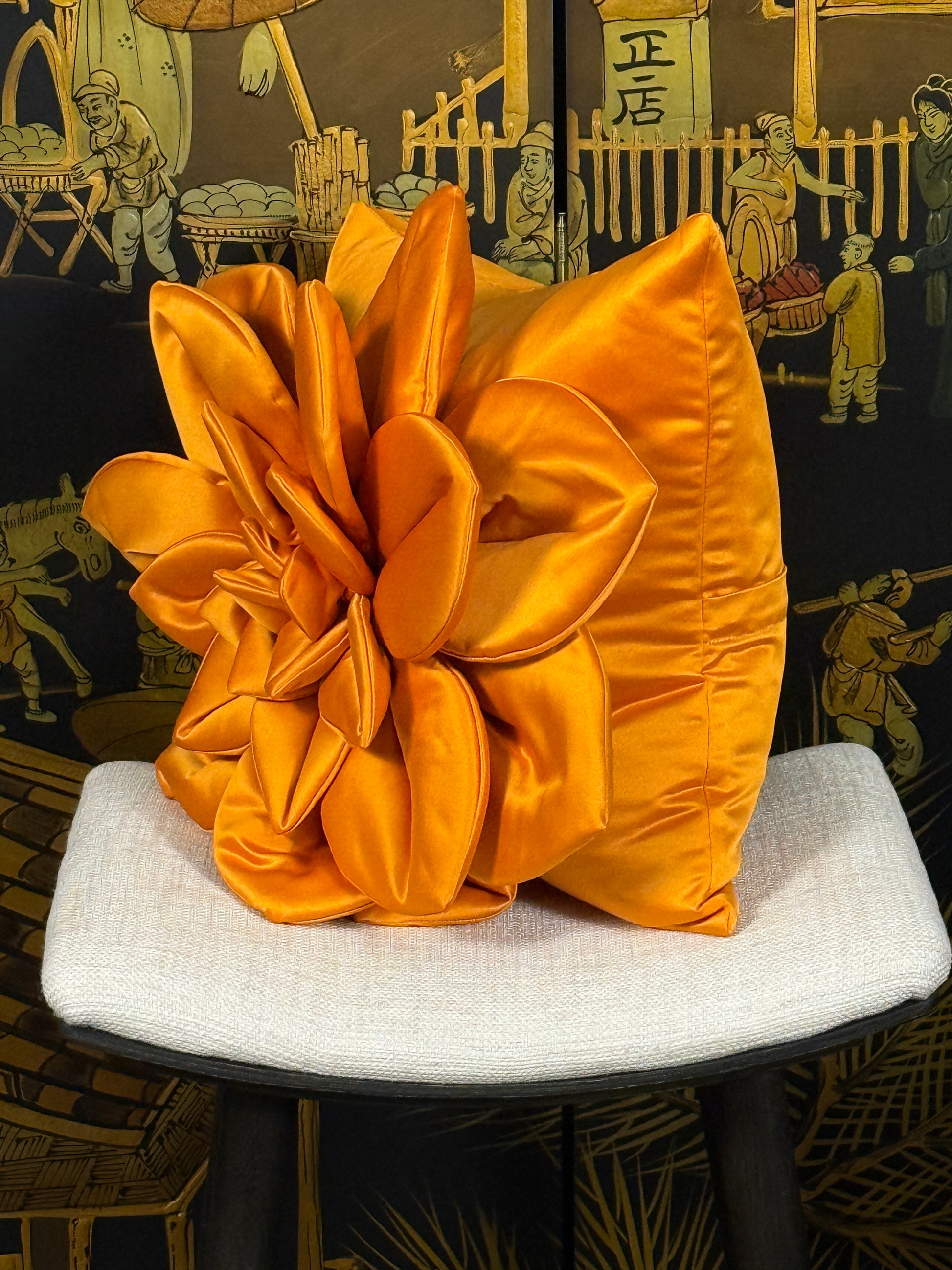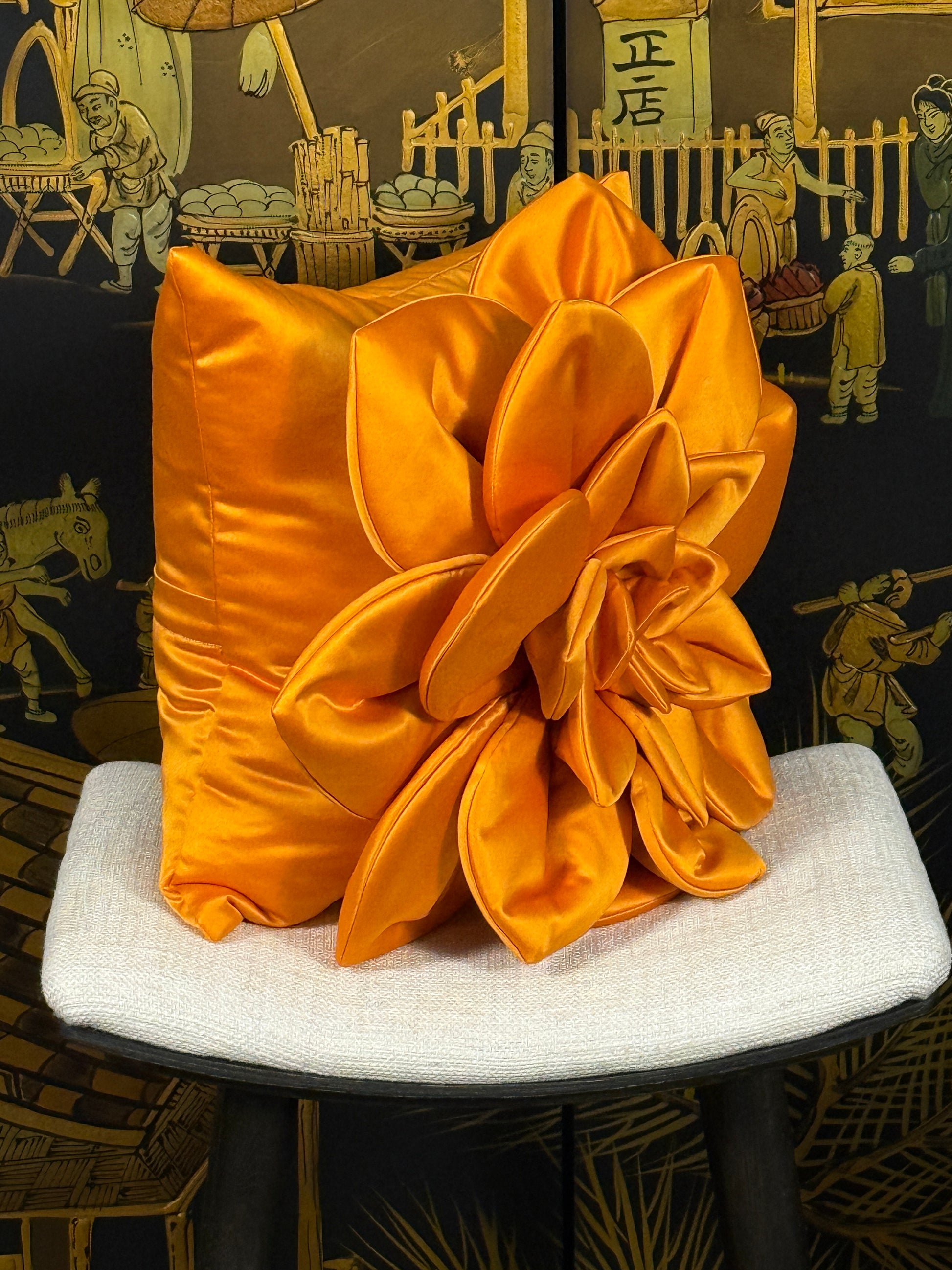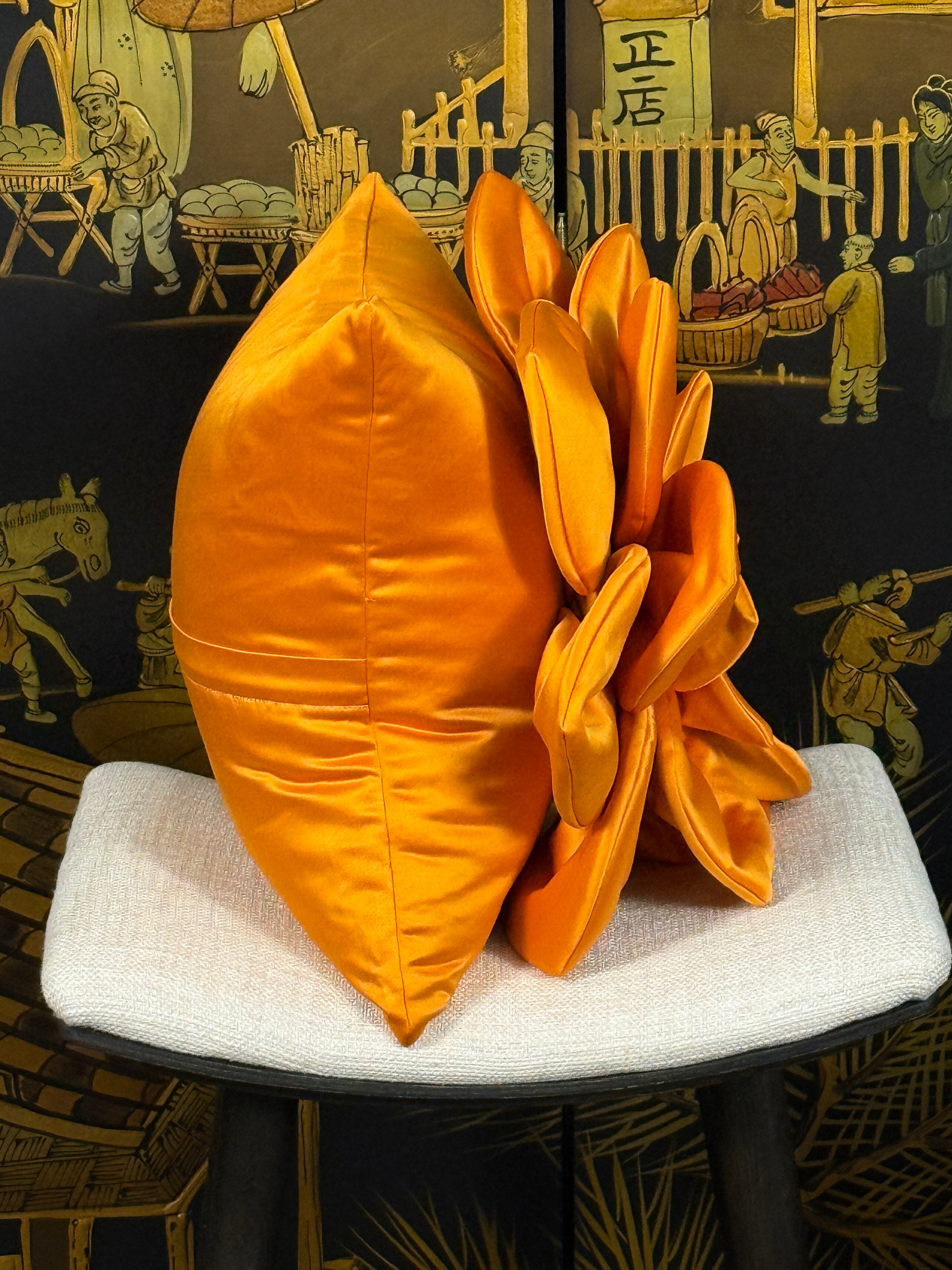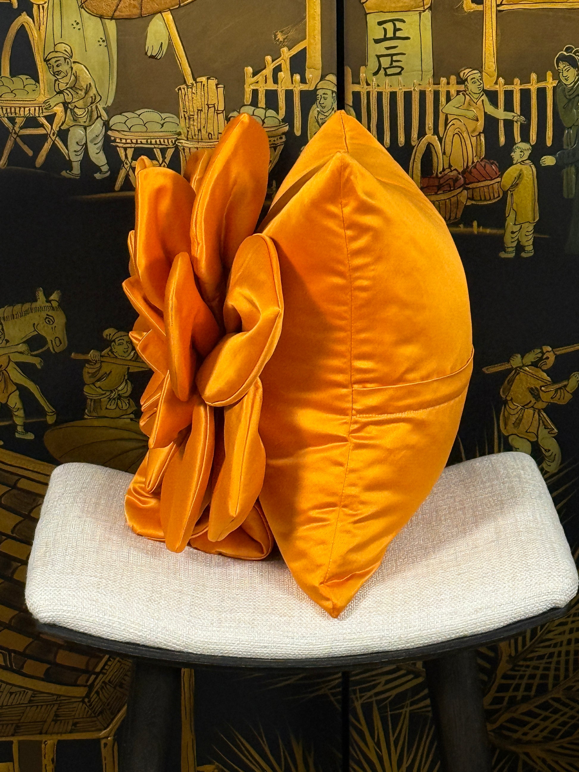🧡✨ Orange Satin Flower Pillow - Ukrainian Artisan Luxury Meets Bold Statement Design ✨🇺🇦