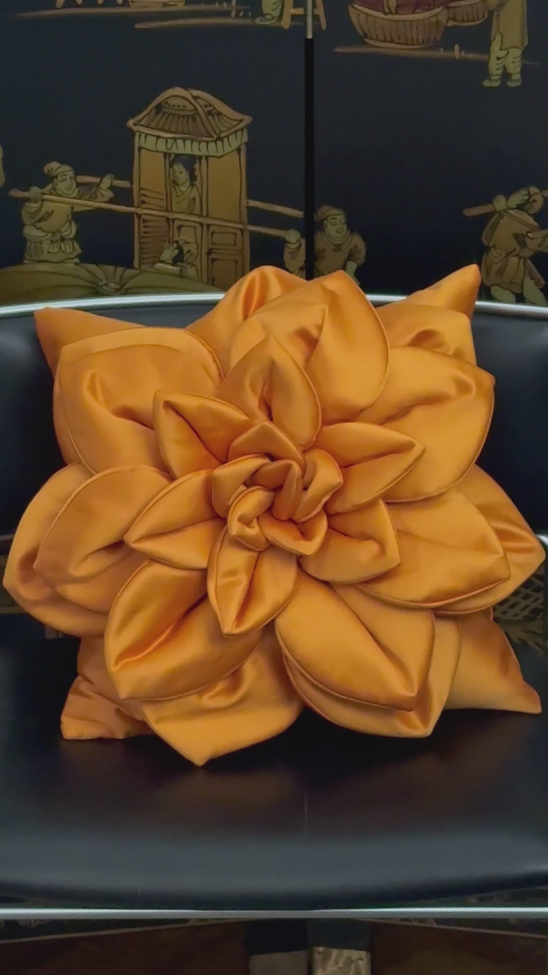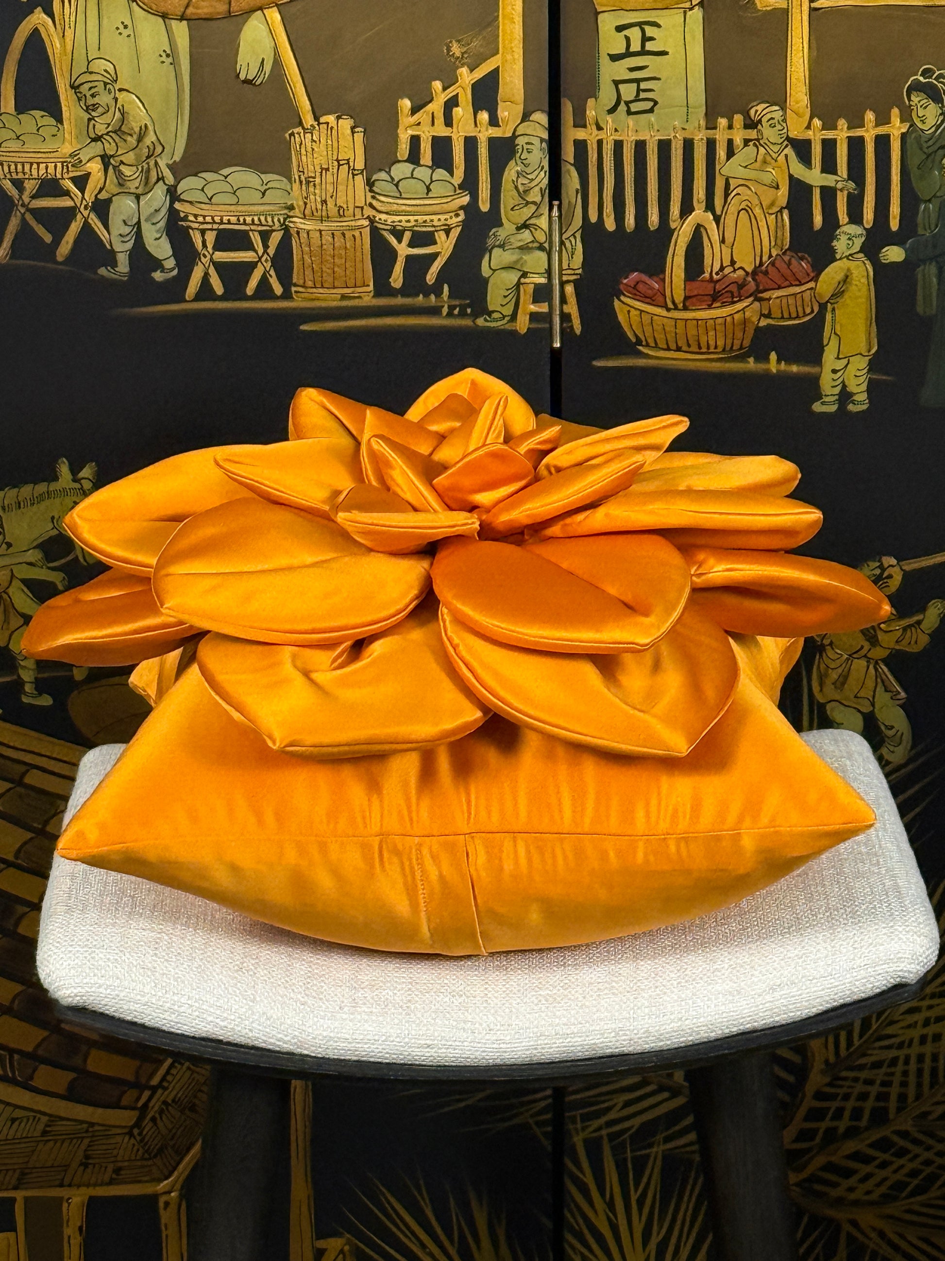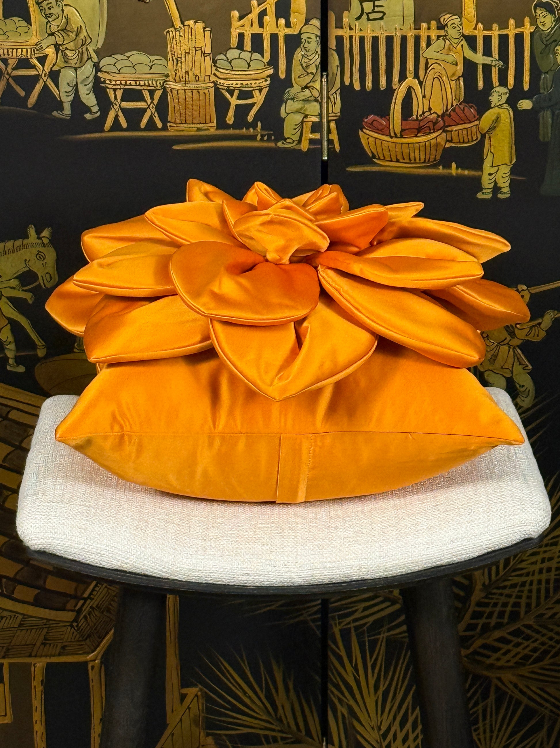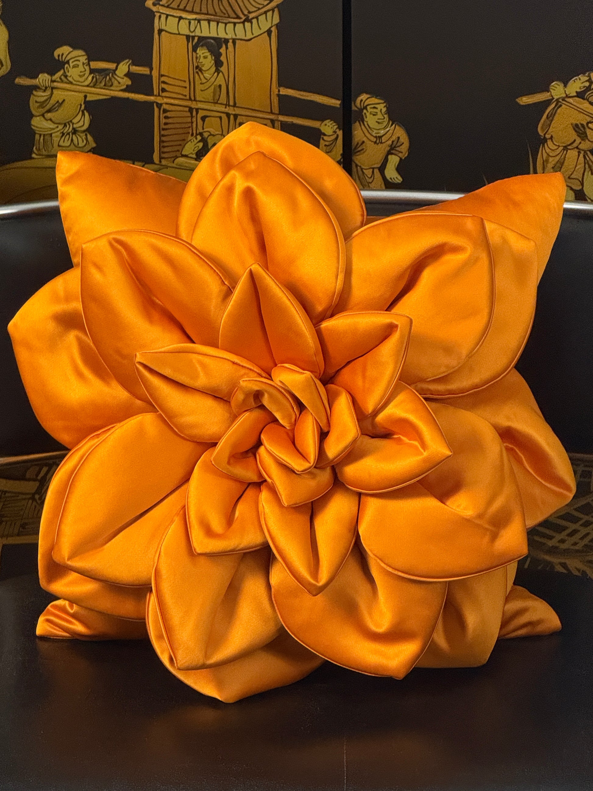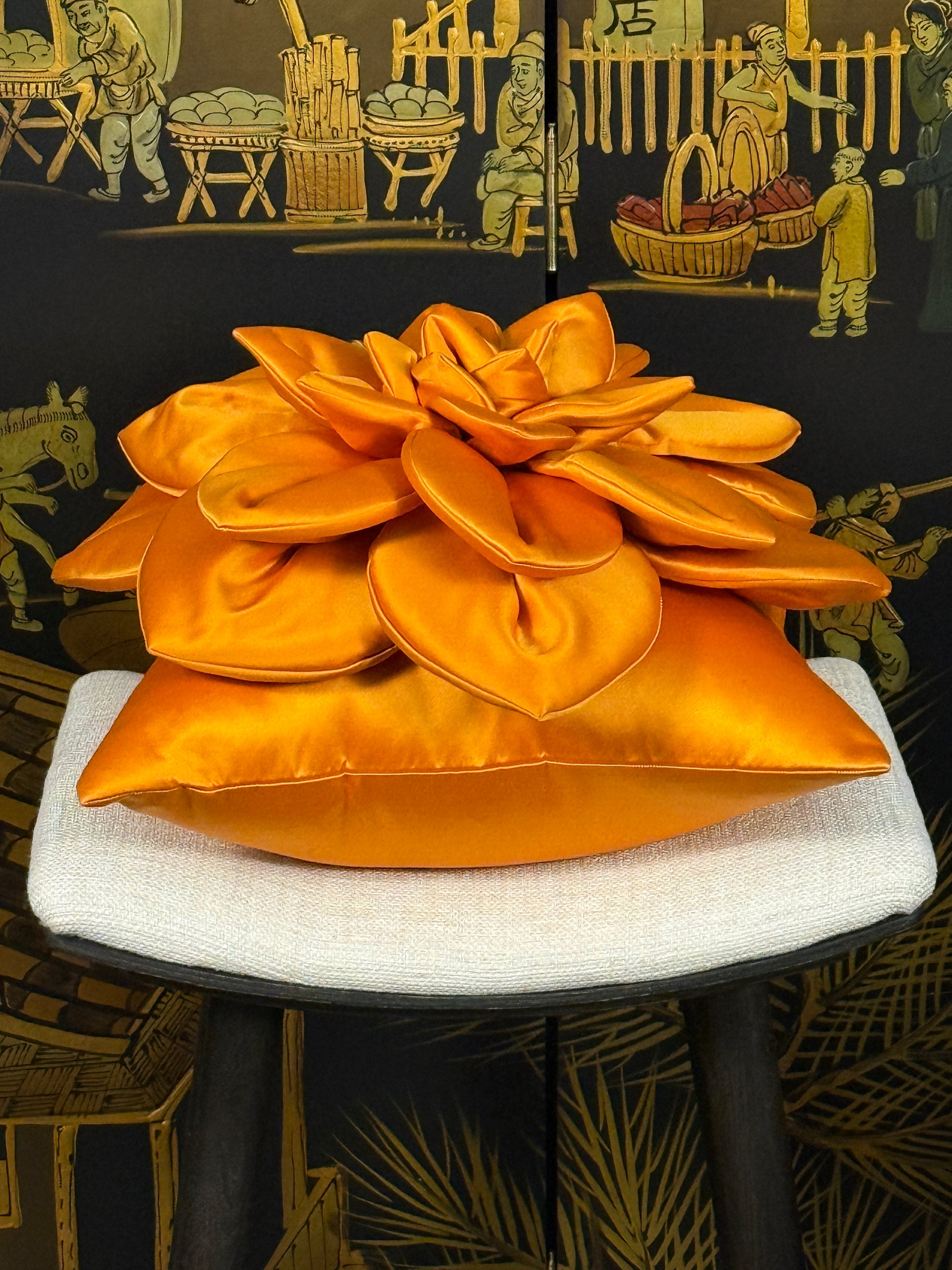 🧡✨ Orange Satin Flower Pillow - Ukrainian Artisan Luxury Meets Bold Statement Design ✨🇺🇦