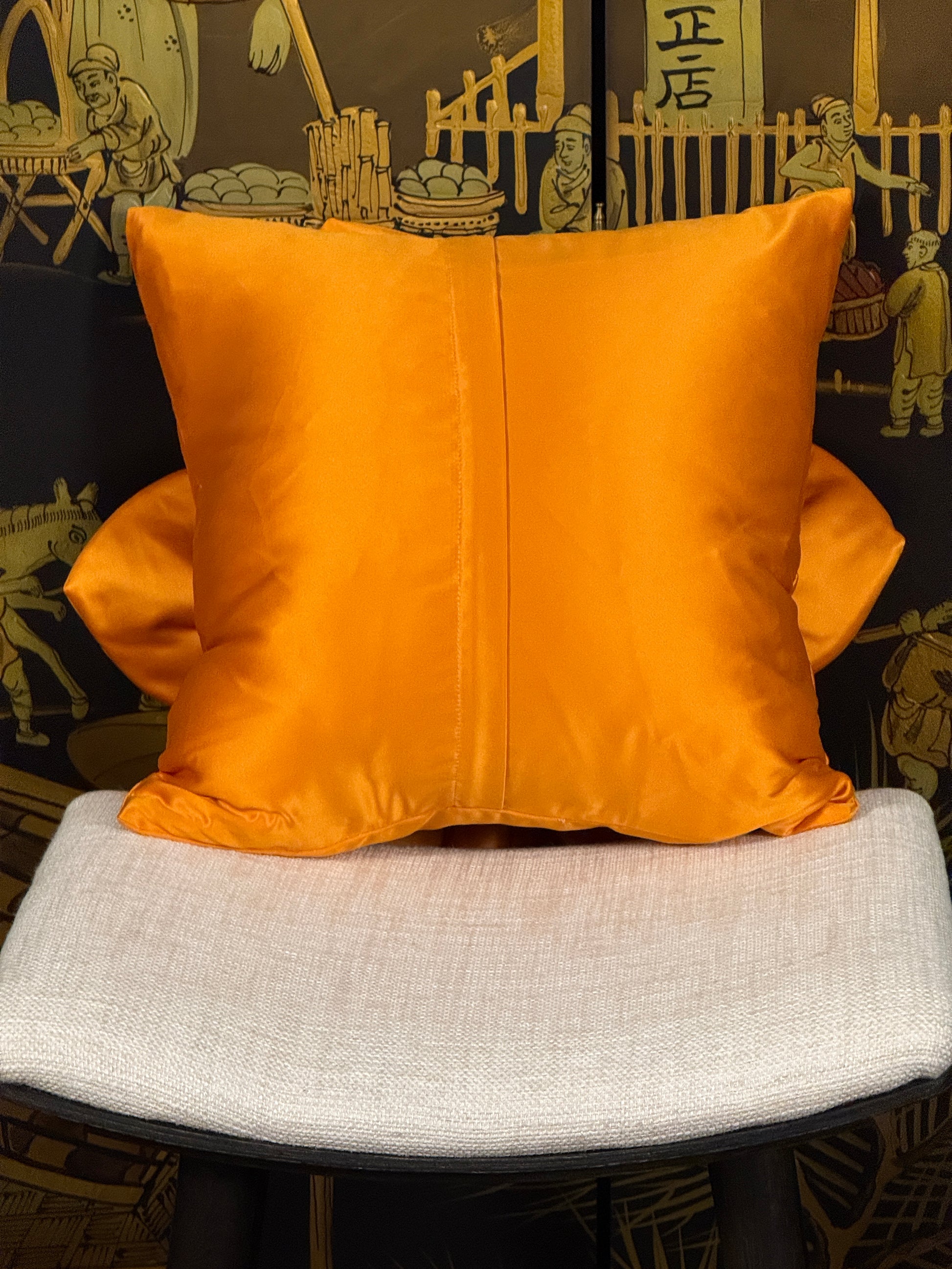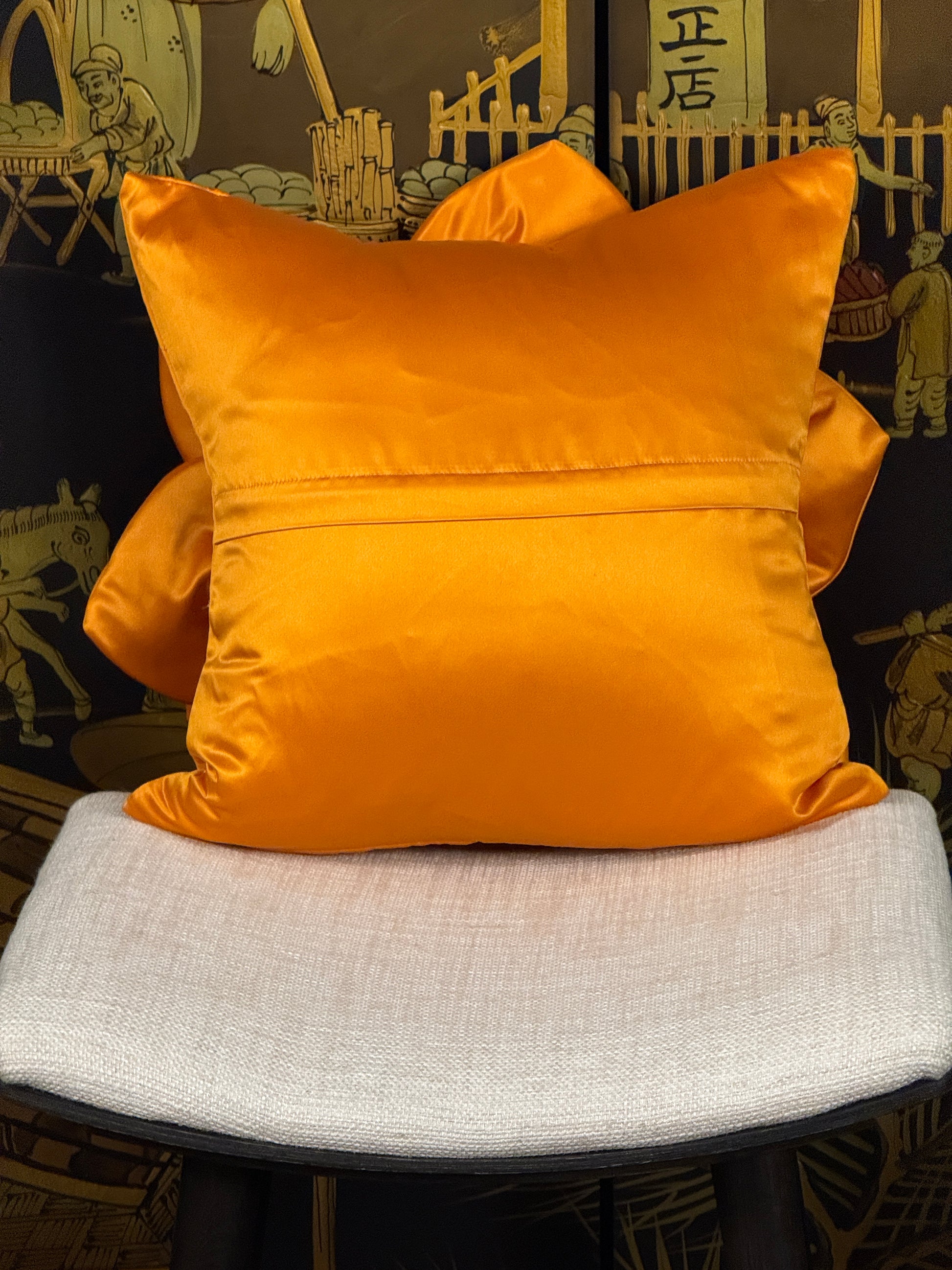 The vibrant orange satin creates dramatic visual impact while adding warmth and energy to your décor, making this pillow perfect for creating focal points and adding personality to any room.