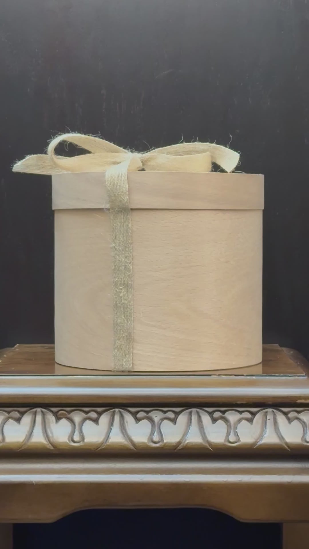Elegant Wood Box: Height 6.5 inches, Width in girth 22.5 inches