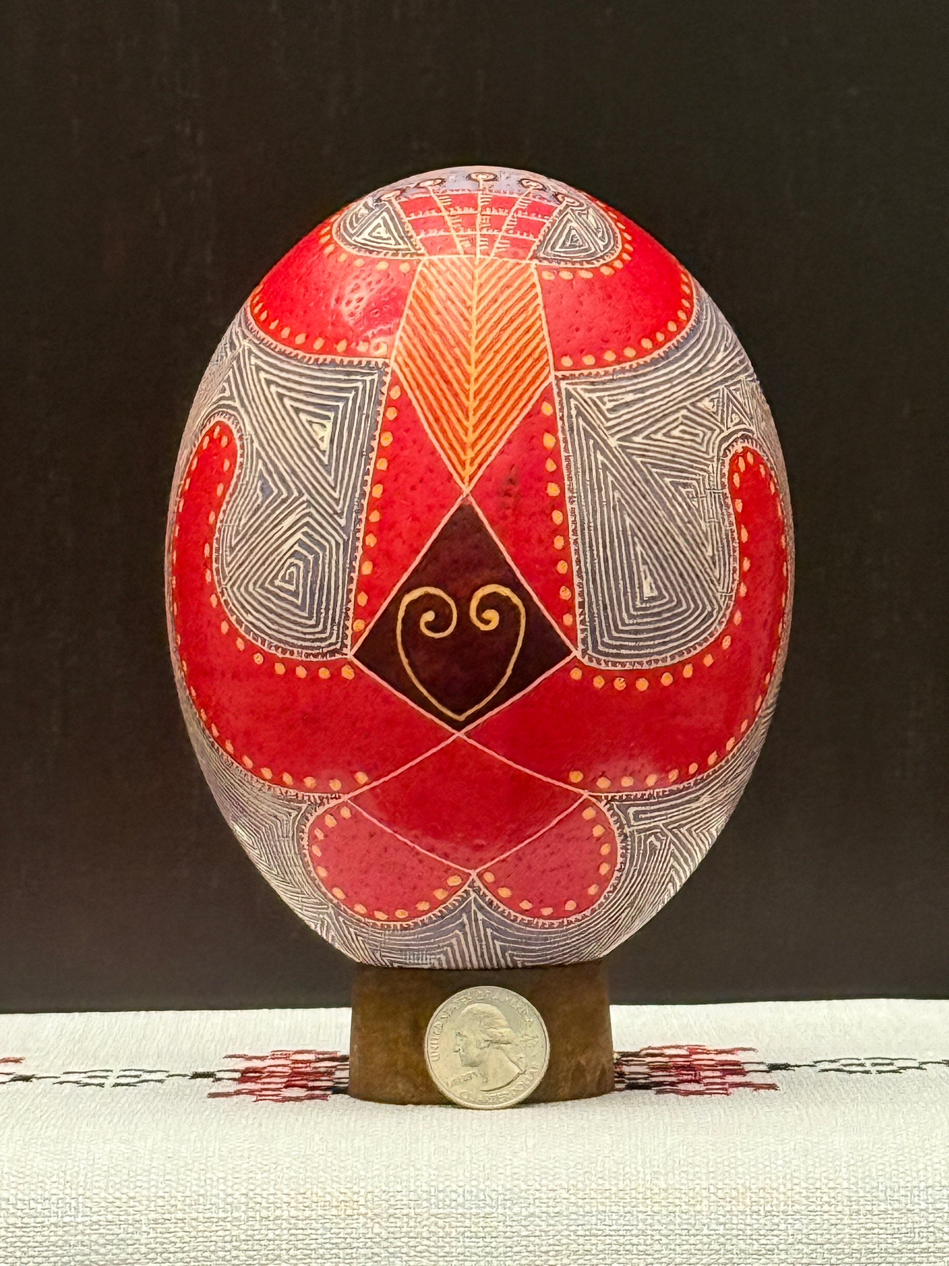 This powerful pysanka embodies feminine energy and spiritual protection, with every line crafted to honor the guardianship and life-giving force of the sacred feminine in Ukrainian spiritual tradition.