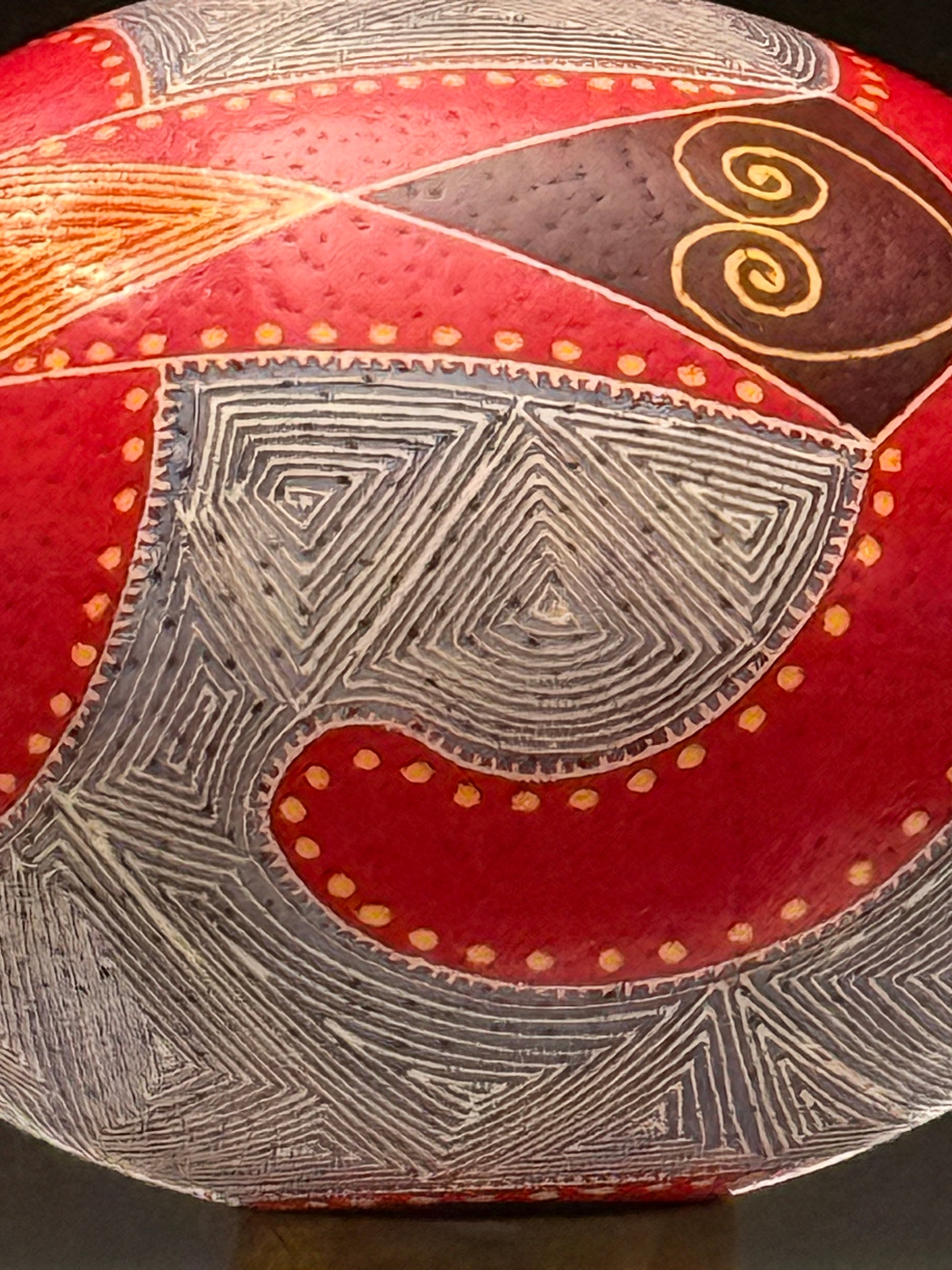 Bring home a powerful symbol of protection and ancient beauty. This one-of-a-kind Ostrich Egg Pysanka, titled "Goddess Guardian", was hand-painted by Ukrainian artist Olga Sakhno with great care and love. This isn't just art - it's a sacred connection to 7,000-year-old Ukrainian spiritual traditions.