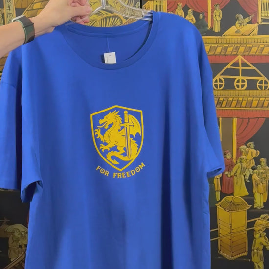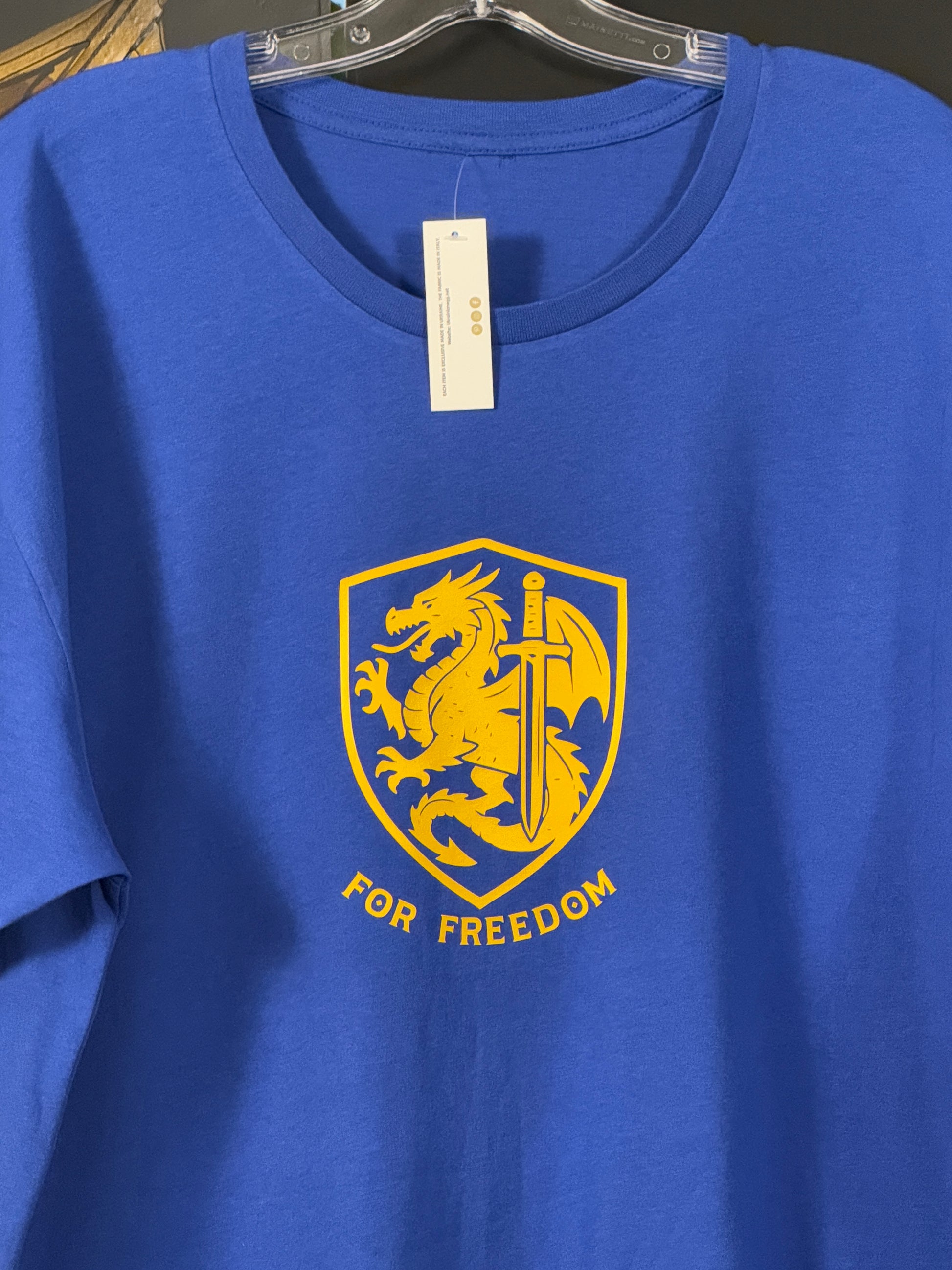 ๐๐ฝ "FOR FREEDOM" Dragon & Sword T-Shirt โ Royal Blue & Gold ๐ฝโ๏ธ