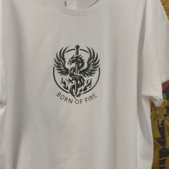 🔥⚔️ "BORN OF FIRE" Phoenix Sword T-Shirt – Heavy Cotton, White | Size L ⚔️🔥