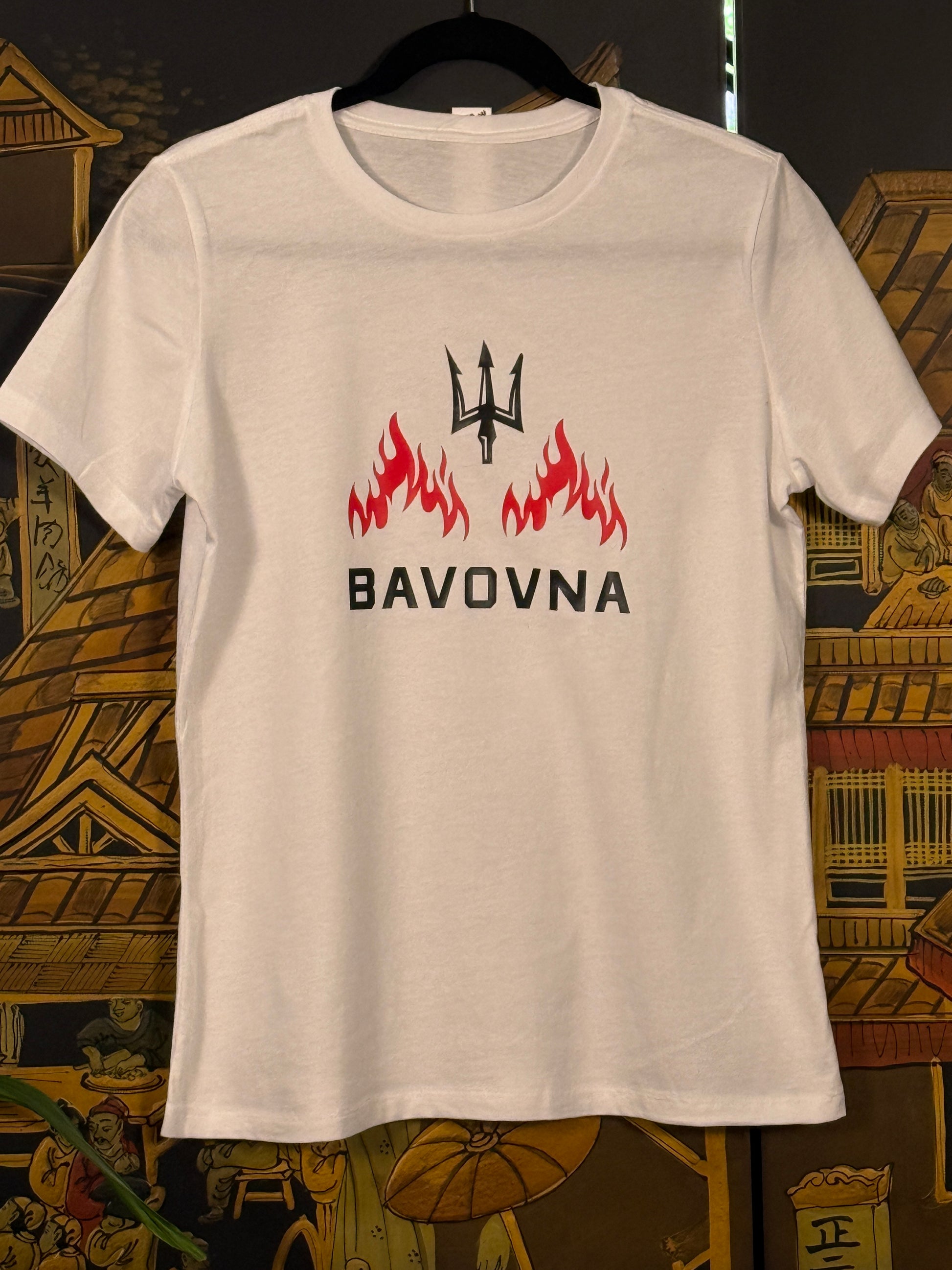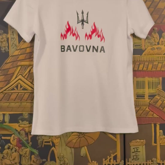 ๐ฅ๐บ๐ฆ "BAVOVNA" Tryzub Fire T-Shirt โ White & Black | Men's & Women's Fit ๐บ๐ฆ๐ฅ