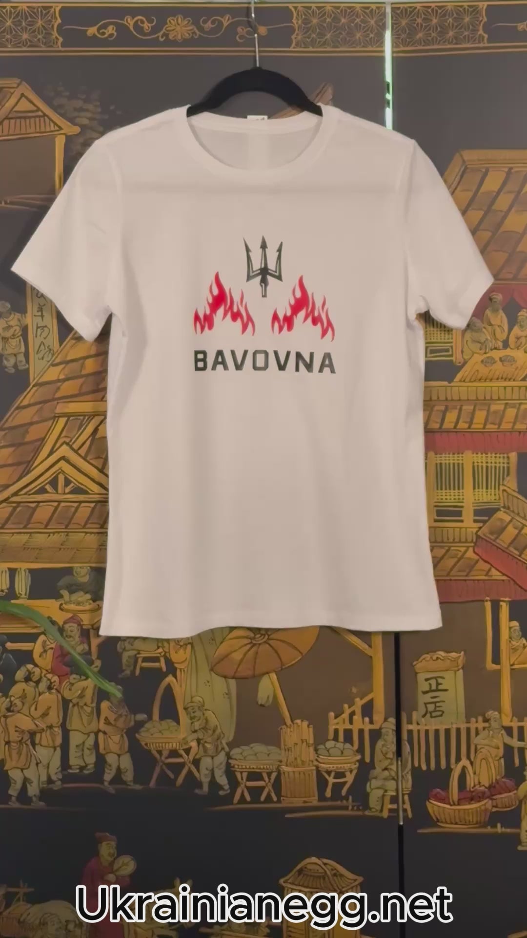 This striking tee features a bold black Ukrainian Tryzub with blazing red flames beneath it, paired with the powerful word: "BAVOVNA" โ a symbol of Ukrainian resilience, unbreakable spirit, and the fire that burns for freedom.