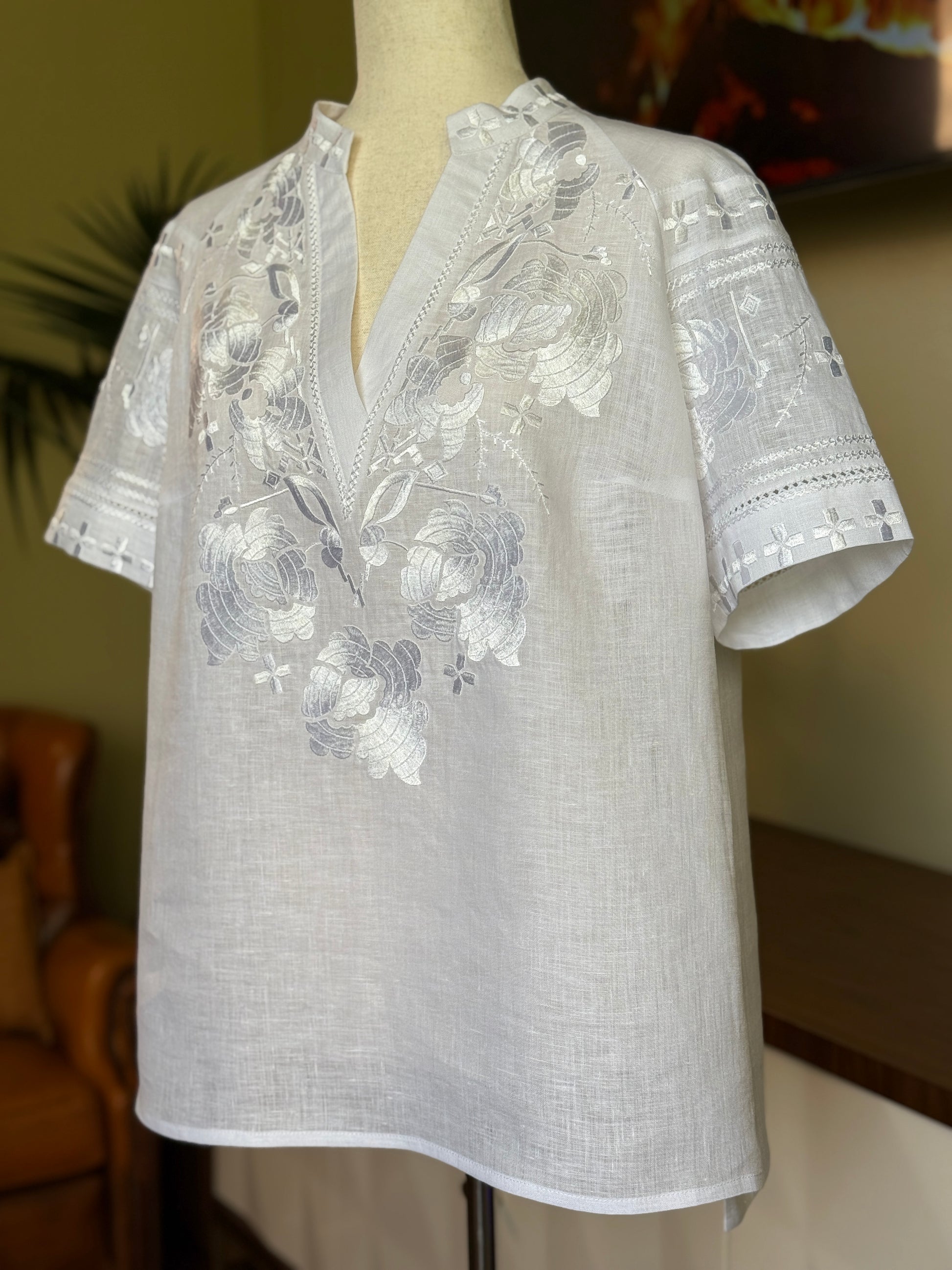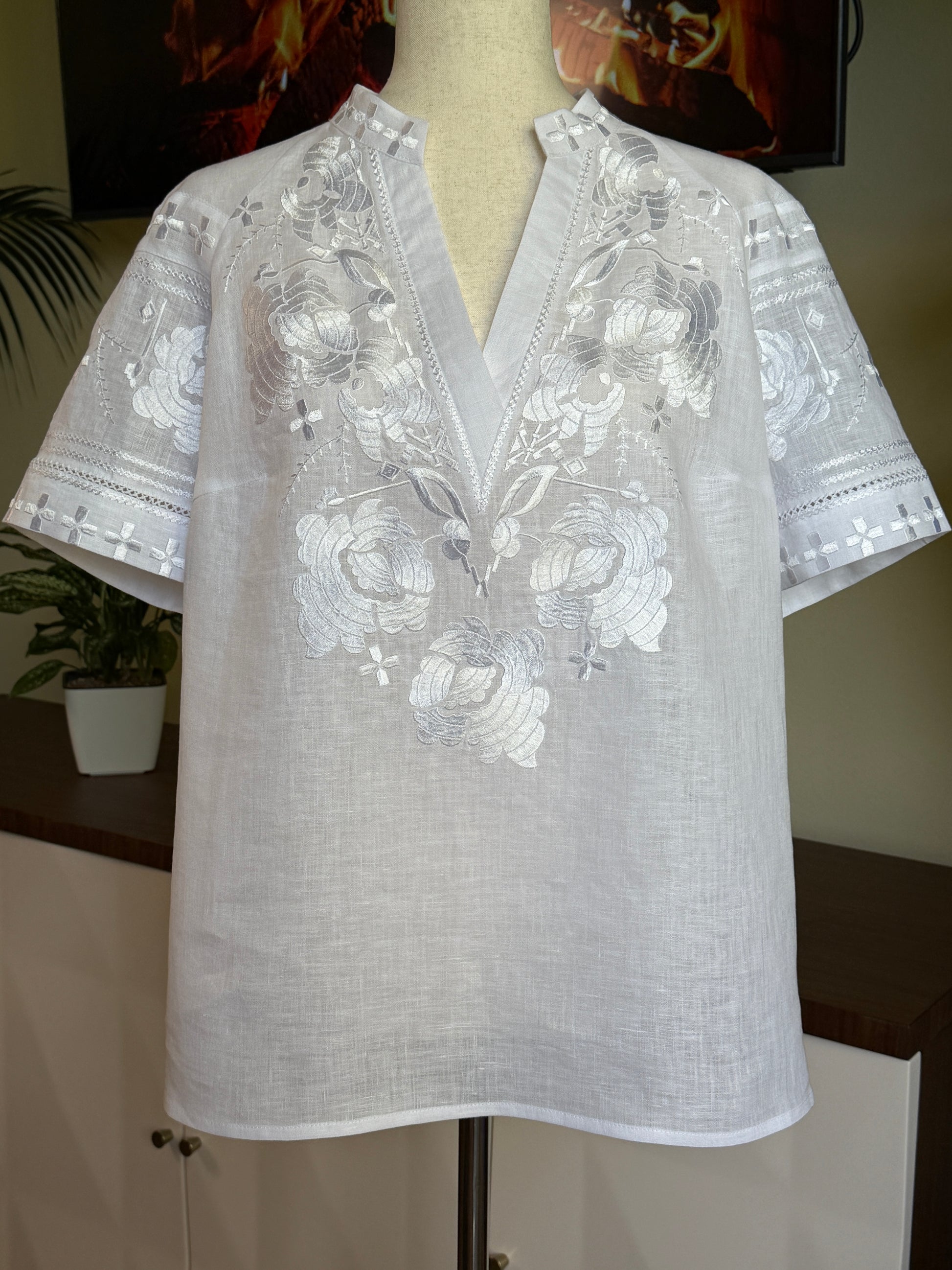 🌿✨ "Shervino" White Linen Blouse - Dutch Premium Meets Ukrainian Artisan Excellence ✨🇳🇱🇺🇦