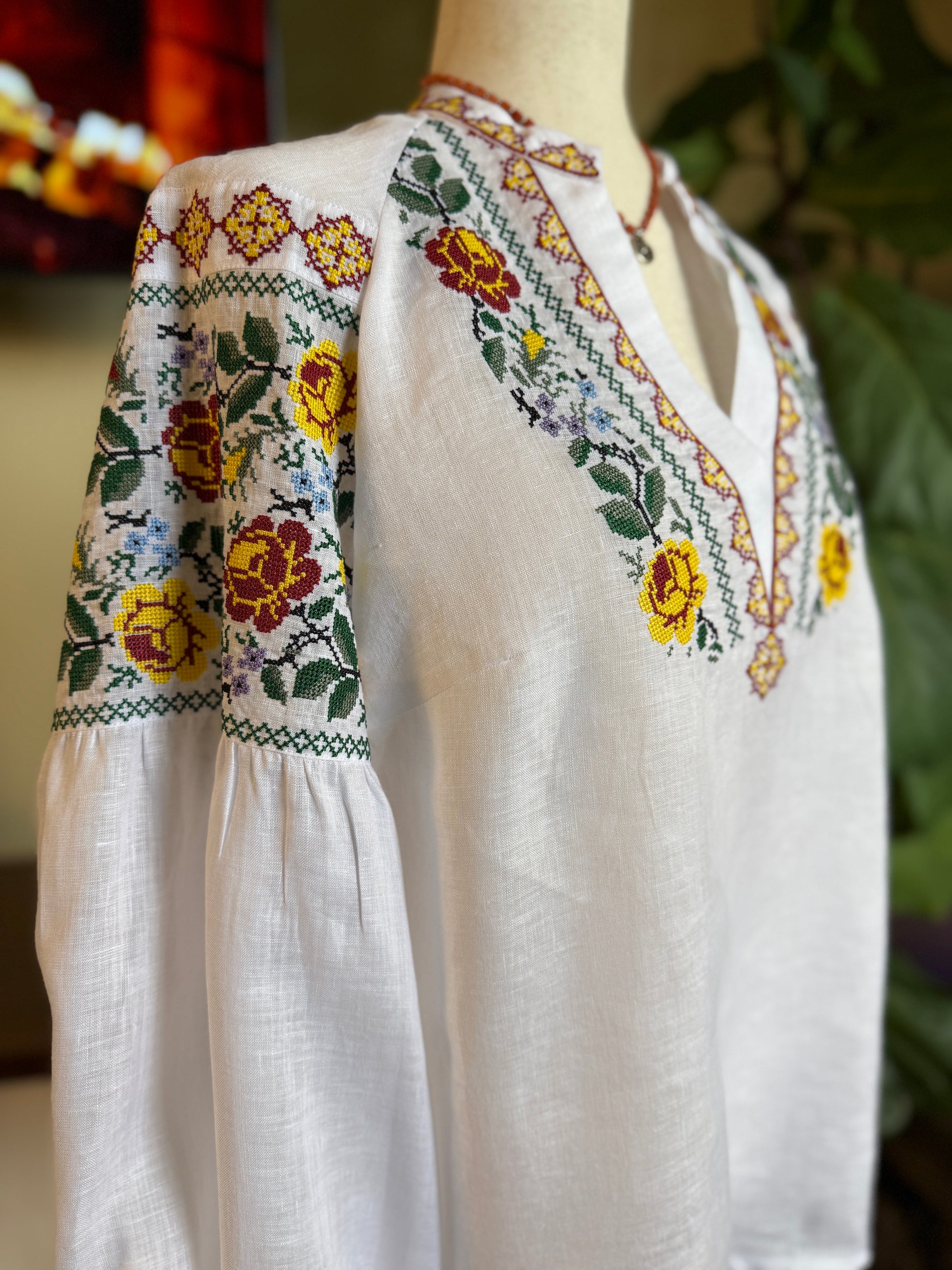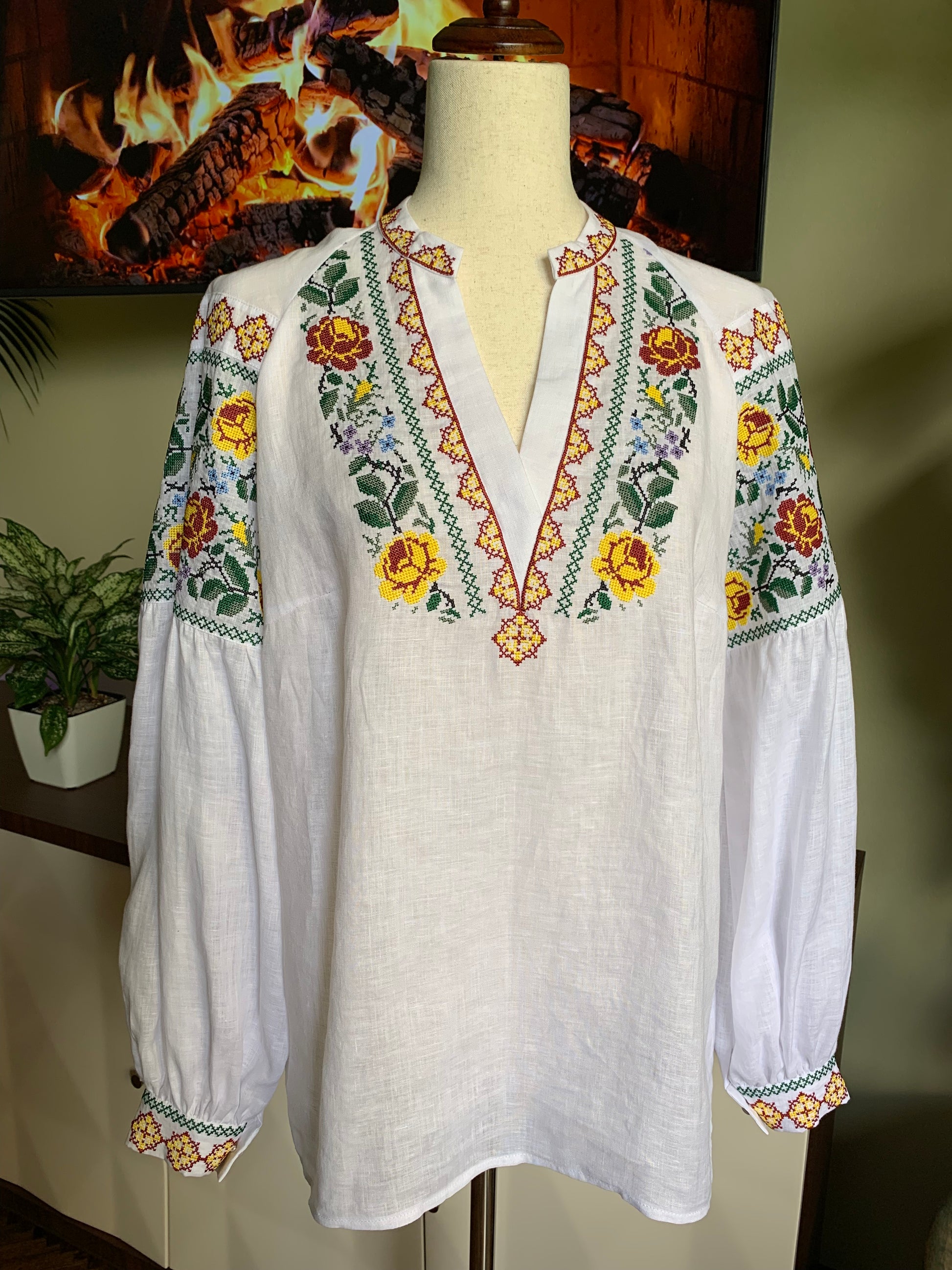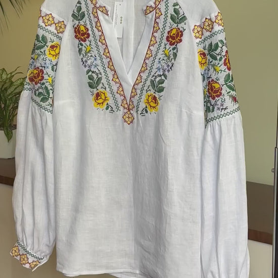 Where Italian luxury meets Ukrainian artistry! This isn't just a blouse - it's your exclusive piece of wearable art, crafted from 100% Italian linen and embroidered by master Ukrainian artisans in a small art factory.